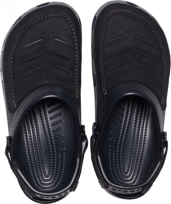 Los refuerzos de cuero genuino en la parte superior y las correas ajustables en el talón añaden una dosis de resistencia a estos zuecos. Con un gancho & sistema de cierre de bucle que también gira hacia adelante, usted es libre de elegir entre un deslizamiento de manos libres o un ajuste seguro. Croslite™ Las suelas y las plantillas de espuma pueden soportar los elementos del exterior mientras brindan una verdadera comodidad alrededor de la fogata, en el sendero o en casa. Parte superior de cuero genuino;